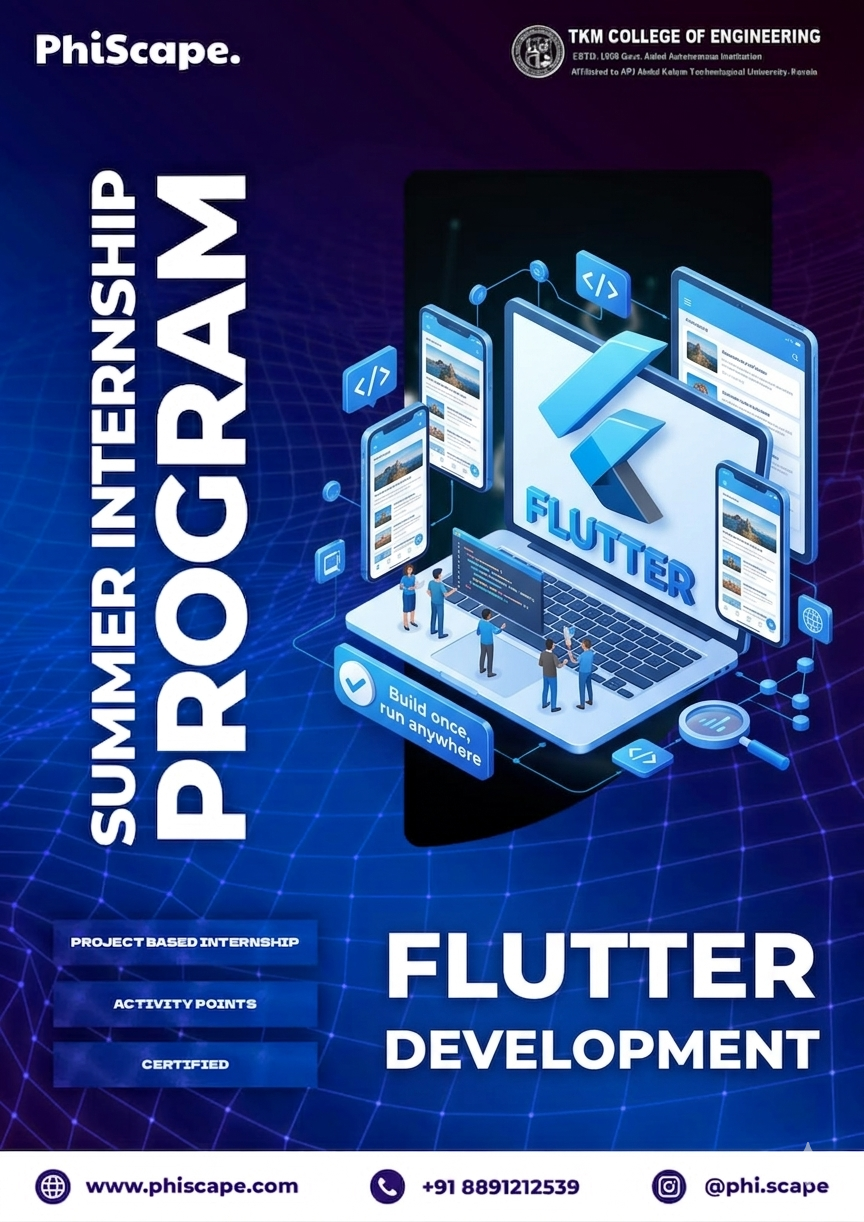 PhiScape Robotics Pvt Ltd. is pleased to announce an exceptional summer internship opportunity. In collaboration with the Department of Electrical and Electronics Engineering at TKM College of Engineering in Kollam, we proudly present the “Summer Internship Program” featuring various high-demand technologies.